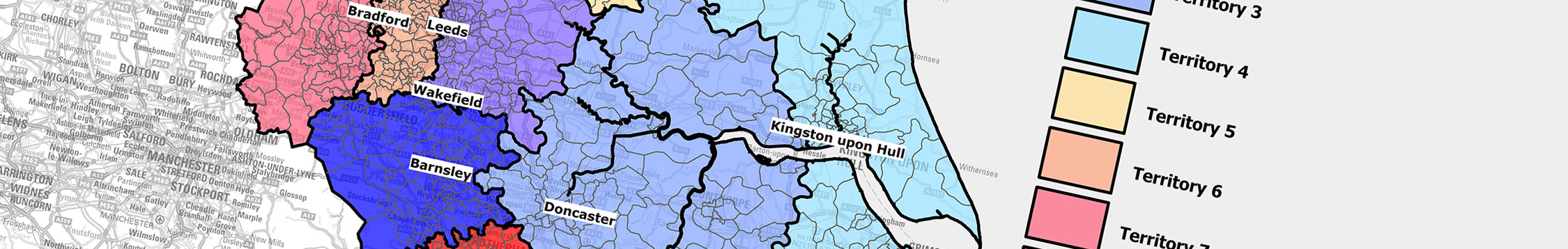 Beacon Dodsworth offer a range of tools to create territory maps for your field team; from easy-to-use postcode mapping tools, through to full in-depth territory management and planning using drive time, distance and customer demographic data to make your business as effective as possible.